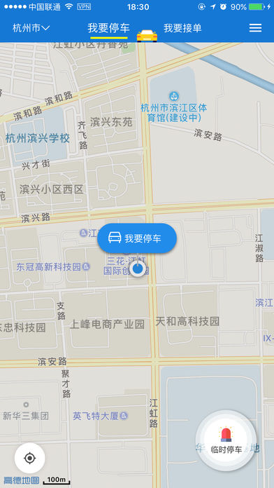 2、打开应用自动推荐附近车场及车位,3秒内完成订位;