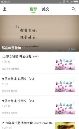 听美文学英语app全新的手机学习软件,通过这里能够为用户带来学习上的进步,汇集了海量的精品美文,在享受美文朗读的同时还可以学习英语口语,让自己的英语成绩更上一层楼,欢迎前来下载!