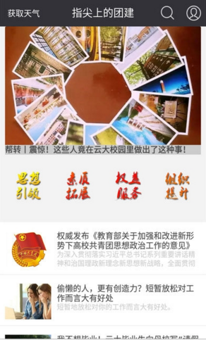 云大指尖团建app全新的校园宣传软件,一款大学共青团教育宣传服务平台,能有效管理团员成员,共青团知识宣传风采展示青年沟通交流等多种功能,需要的用户欢迎下载!