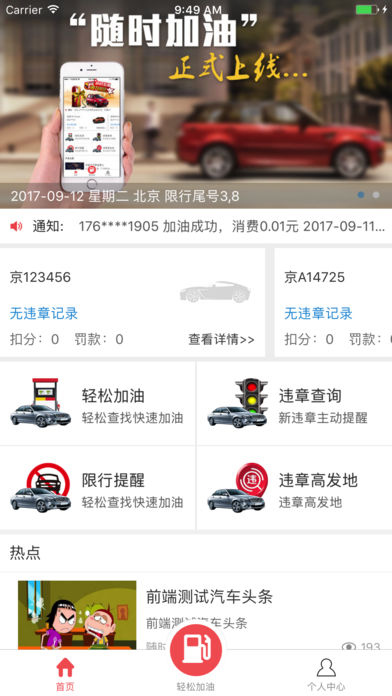 3、在App内添加自己的车辆,还可以查询车辆的违章记录;