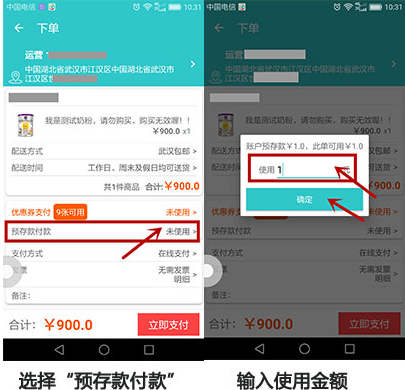 3、在订单结算页面输入抵扣金额后完成付款