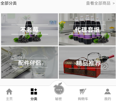 包含首页,资讯,分类,购物车,个人中心,不老莓和不老莓资讯一网打尽;