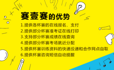 赛壹赛app——中小学数学、语文、英语、等综合竞赛,及艺术考级等报名平台,专注于搜集各类赛事信息的第三方资讯平台,并通过APP、微信、PC端为用户免费提供各类赛事在线报名及相关服务。