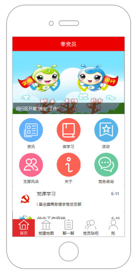 互动,设立党员社区,党员可以发帖、群聊、在线咨询,加强党员之间的沟通交流;