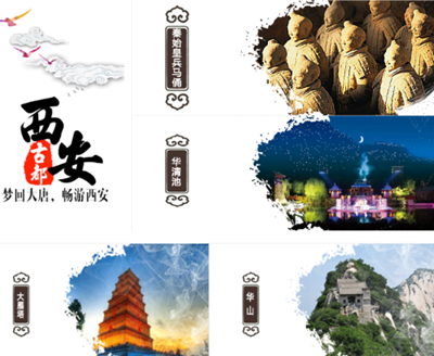 华清池、陕西历史博物馆、秦始皇陵、临潼、西安饭庄、西安城墙、大唐不夜城、大雁塔北广场等