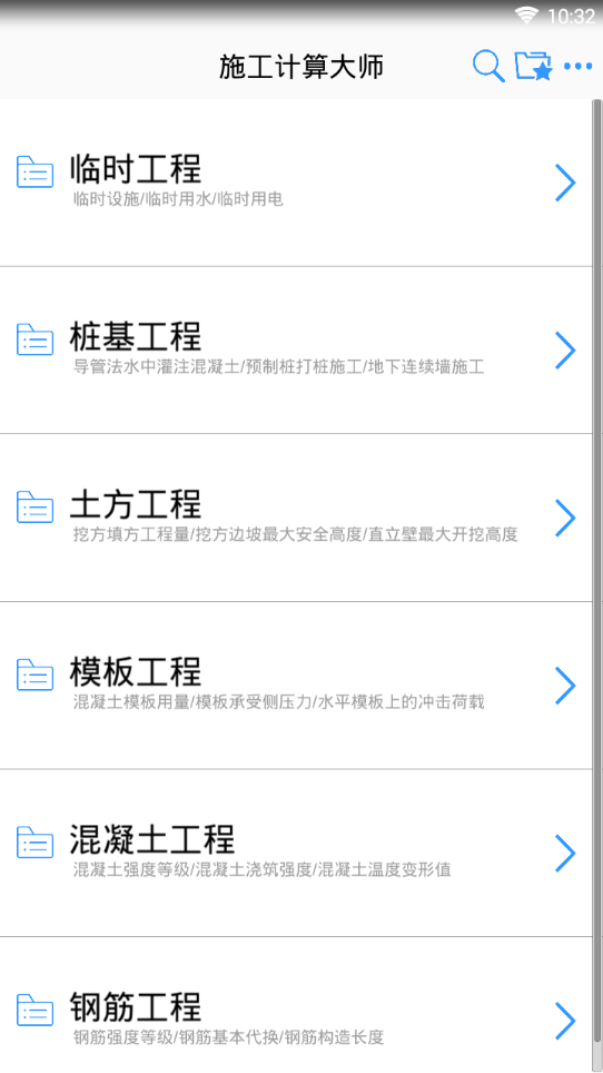 施工计算大师手机版全新实用的手机办公软件,非常棒的施工计算软件哦!专为土建人士打造的一款手机办公软件,这款软件能够更好的计算查询钢筋、混泥土规范标准,需要的用户赶快来爱天空官网下载吧!