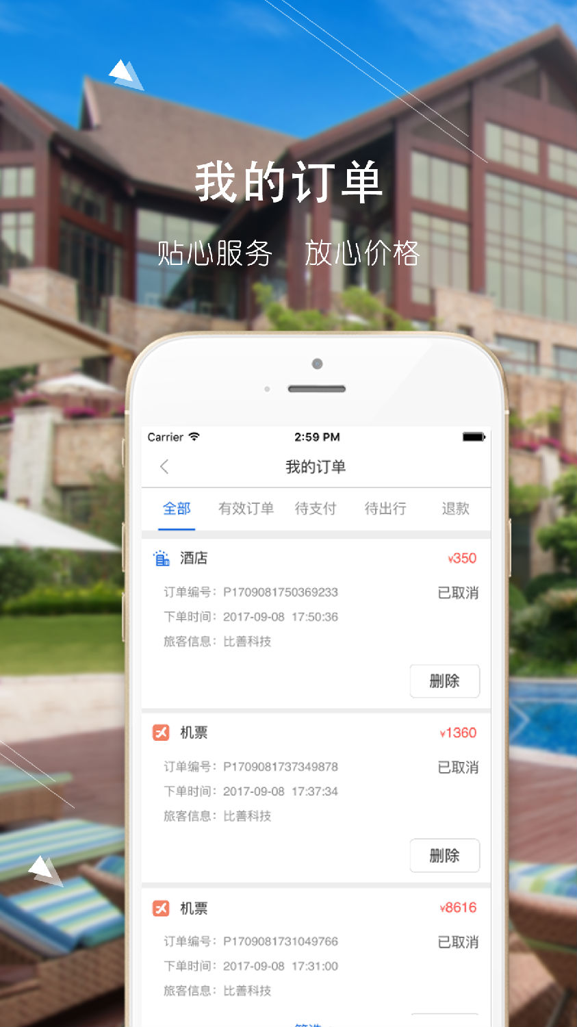 3.方便的进行订单、个人信息、常旅客等管理,操作方便快捷;