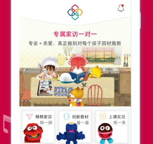 针对2-5岁的孩子,透过英语启蒙老师进行上门一对一家访教学,以玩习式互动引领孩子浸泡在欢乐的英语环境,并利用APP将面对面的教学延展至日常生活,让家长轻松引导孩子自主学习、激发潜能,更让孩子自然而然喜欢英语、爱上英语、自信说英语。