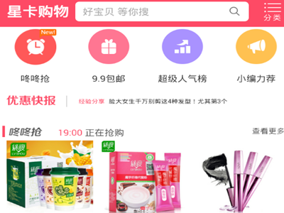 星卡购物app是一款手机购物商城。用户可以通过这里来快速的购买商品等,每天都有优惠活动等你来参与,更有优惠券免费放松哦!想要体验优惠购物的朋友就来下载吧!