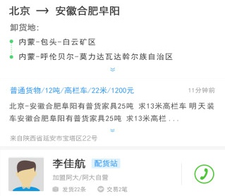 信息精度匹配:我们通过运输路线、车辆类型、货物类型、货物重量等条进行多维度匹配,让车主货主“一见钟情”;