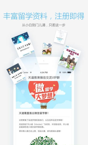 天道留学app全新的手机学习类软件,也是专门为即将出国留学的学生打造的一款留学服务平台,而且里面有着海量的留学资讯、留学指南、留学申请等,是出国留学的必备软件哦,欢迎下载使用!