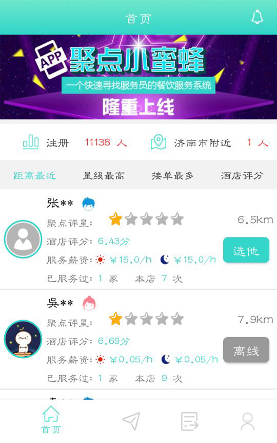 聚点小蜜蜂app是一款酒店用餐客户进行服务员服务的手机软件应用,通过软件可以发布自己的服务需求在线寻找接单的服务员,互惠互利方便双方,喜欢就快来下载吧。