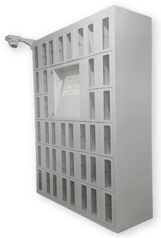独立的柜式构造,体积小,占地面积小。书栈设置有许多“书格”,每个书格都有一个独立的空间和独立的柜门,内部可存放一本图书。每个书栈有独立的触摸屏,只需根据提示在触摸屏和手机上完成相应的步骤,书格会自动打开,就可以取出/放入图书。