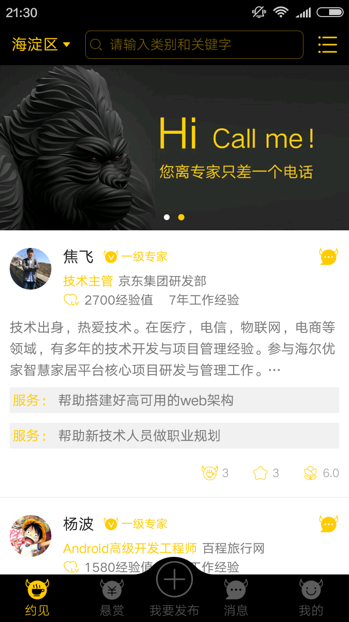 大牛技术经验共享平台是一款专为技术大牛提供的技术经验需求分享接单赚钱手机软件,公布自己的相关项目经验以及技术擅长获得对方的订单请求,在线商务合作赚取金钱,有需要的朋友们快来下载吧。