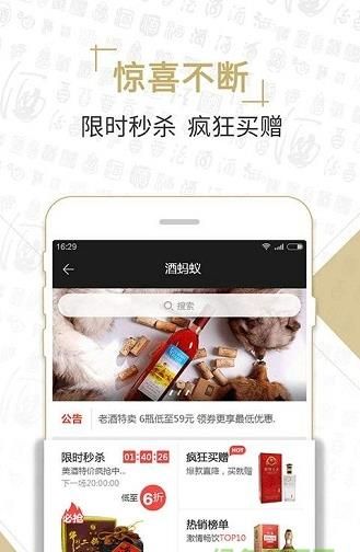 酒蚂蚁app是一款在线购买酒品的手机移动软件应用,其中包含各种品牌和国家的美酒,直接在线选购就能为你安全配送到家,质量有保证喜欢就快来下载吧。