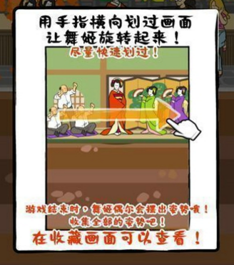 用你的手指在舞姬的两侧轻轻一点,注意张开横跨小人头部两侧屏幕边框与耳朵连线外三分之一处,这样舞姬才能更快的向下钻~大家可以多尝试几次来熟悉游戏的玩法哦!