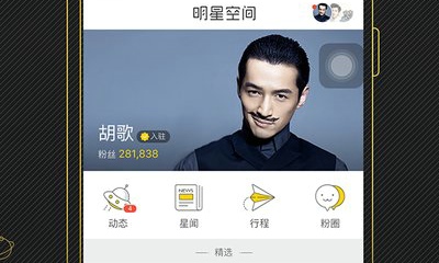 目前,已有多位明星强势入驻明星空间,包括胡歌、杨幂、BTOB、陈伟霆、陈晓、张艺兴、韩庚、林更新、冯绍峰、张翰、周笔畅、邓紫棋、唐嫣、少女时代、汪东城、罗志祥等!另有多位海内外明星正在紧锣密鼓的洽谈中,全世界的娱乐圈都要被我们承包啦!