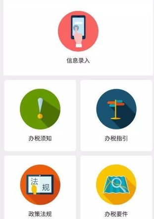 2.目前系统共有五个模块:信息录入、办税须知、办税指引、政策法规、办税要件。