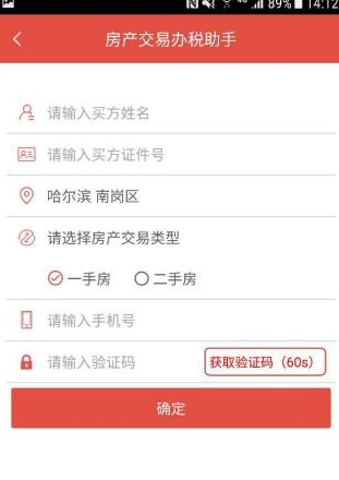 2.信息提取页:在录入信息前,需要录入买方的姓名、证件号、交易类型、手机号及验证码。此模块需由买卖双方商定后使用,只需一人操作,不能分别进行操作。