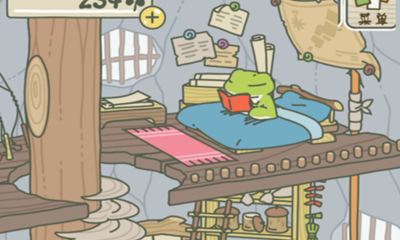 通过收集三叶草去商城买东西,有食物、幸运符、道具。青蛙带着这些东西就会出门旅行,然后旅行途中会邮寄照片,回来还会给你带当地的土特产。