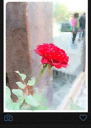 Waterlogue 的用法简单得不能再简单,点击中部左侧的相机按钮,即可打开图库选取素材。然后选择一种你喜爱的绘画风格,接下来全交给我们的「水彩大师」吧。