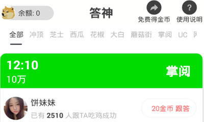答神app是成都柚子文化传媒有限公司推出的一款解答神器,冲顶大会、百万英雄不在话下,答神app带你超神带你飞!立即下载,让答题成为一件简单快乐的事儿!