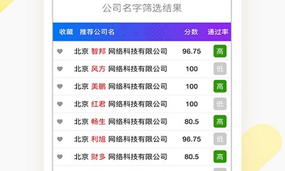 1.自动根据法人和股东八字五行匹配数秒快速生成数10000以上名字。