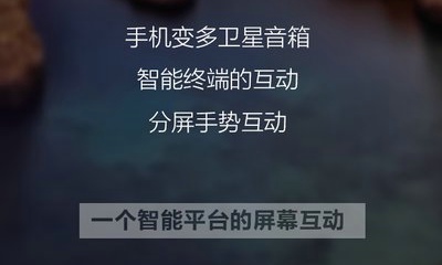 在同一wifi,或移动数据网络下,多台手机可通过分屏互动app组建一个集视频,音乐,图片及文档为一体的多角度展示平台,好友之间可以通过分屏互动app,在多台苹果设备之间共享多媒体文件,如开会时,共享同一份文档,向会场内的所有人员展示实时操作。
