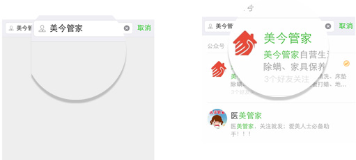 2、在下图搜索处输入“美今管家”,然后点击“搜索”,点击右下图的“美今管家”