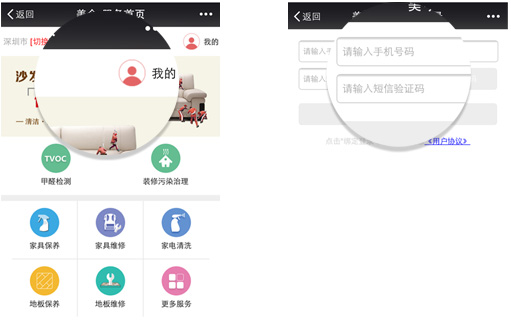 4、点击下图“我的”,输入个人手机号,接收验证码的信息后输入验证框内,点击“确认”即可完成会员注册。
