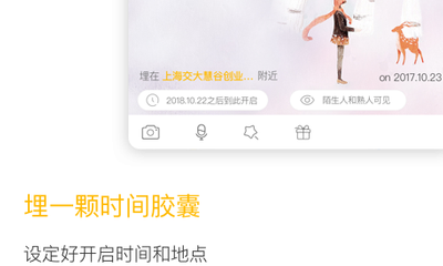 想缓存高考前的心情?想对3年后的自己或者关心的人说上一段话?想在你脚下的这块土地上留下足迹和故事?想去梦想中的那个地方?想把祝福提前写下送给未来的对方?想把自己的疑惑和迷茫封存起来,以后笑着品味一下……埋下时间胶囊,指定好开启的日期或者地点。等到了那天,或者去了那个地点,开启胶囊的你会收获满满的感动和惊喜。