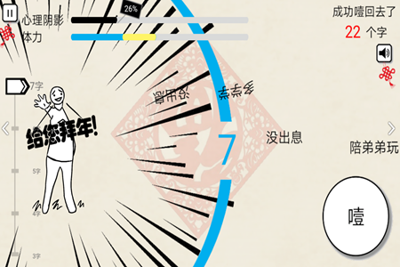 一款非常魔性的休闲游戏,玩家以弹幕的形式出现,再现了过年时候的情形,真的是各种阴影,玩法也非常具有魔性,当出现各种情况你能成功抵抗的住吗?利用你噎人的技巧怼回去吧!