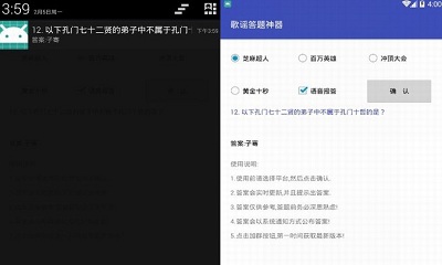 歌谣答题辅助外挂神器是一款全新的综合性答题辅助软件,适用于冲顶大会、百万英雄等等各种直播答题赛事,并且时刻更新紧跟最新出来的各种直播答题软件题库,一个软件就能答所有题目,有需要的朋友们快来下载吧。