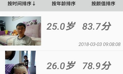 5、您可以将照片保存到该APP的收藏夹中,然后对收藏夹中的照片按照年龄、颜值进行排序。找出颜值王。