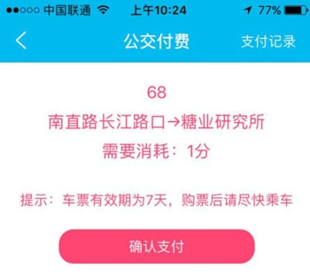 支付车票,1积分=1元钱,支付后自动扣除1积分并生成二维码,如下图