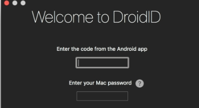 此时只要在Mac上运行DroidID,会出现这样一个界面要求用户输入手机上得到的授权码和你的电脑密码: