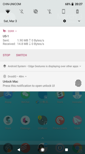 此后,当你需要解锁你的电脑时,只需下拉Android的通知中心,点开DroidID的常驻横幅,然后验证指纹,你的Mac便会立即解锁。