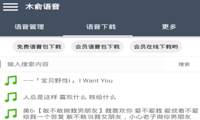木俞语音app是一款非常有趣的吃鸡变声器软件,大家可以通过这里来找到许多热门的吃鸡语音包使用。大量的语音供大家免费下载,想要体验更多的语音功能的话就快来这里进行下载吧!
