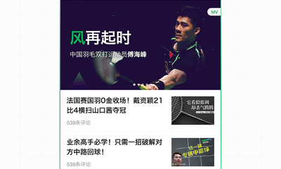 4、新闻:最新羽毛球赛事、球星、教学的新闻文章;