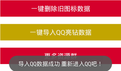 3、点击一键导入亮钻数据,提示修改成功后进入qq名片