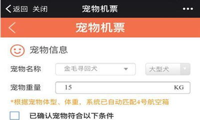 川航物流官方微信公众号上选择“宠物机票”进行下单。