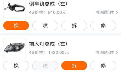 应用支持海量VIN码解析,查询VIN对应零配件名称、零配件编号、装配参考图及原厂销售参考价格等信息,关联对应维修工项,准确定位损失。