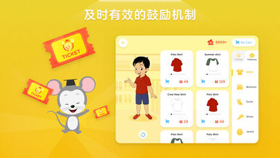 孩子们完成每一项学习活动或课程后,都会得到相应的奖励票,他们可以用这些奖励票为自己的化身、卧室、宠物、鱼缸添购物品,他们也会学到许多现实生活中常用的英语单词和语句,以及一些与数学或财务有关的重要概念及词汇。