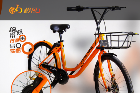 橙风共享单车,具有独特的外形、高科技的卡路里记录,无需办卡,也不用找固定桩停车。使用者需要下载手机APP,实名认证注册,缴纳199元押金,就可以使用。