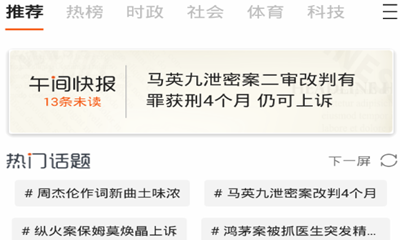 新闻头条实时推送。