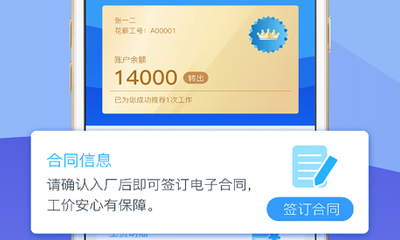 工资卡:查看合同信息、工资单,核对工价工时,一键转出工资