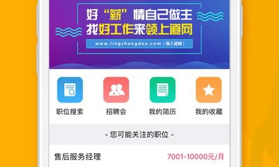 今天小编要为正在求职的朋友带来一款非常不错的招聘服务软件——领上道,本次提供安卓版下载。领上道为大家提供海量的工作岗位,大家在线投递简历后耐心等待消息吧!还有本地招聘会资讯,帮助大家在线下参与招聘会求职,欢迎大家下载使用!