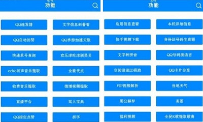 1.网络技术学习、带刺字体制作、菊花文生成、人品测试、自定义说说尾巴、查询话费流泪、生成二维码、生成竖立网名、生成特殊网名、网盘神偷、特殊符号、聊天机器人、路由地址获取