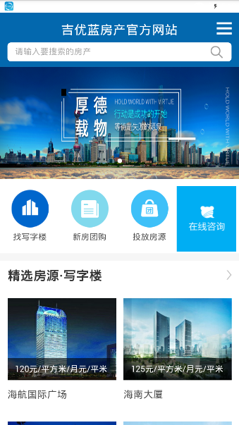 吉优蓝是一款办公写字楼租赁,找房类的生活服务类软件,急需办公写字楼的用户可以来这看看,这里有大量的写字楼资源,用户可以在这找到满意的写字楼进行租赁,里面还有许多新房资源,支持新房团购等功能,有需要的用户可以来这边看看。