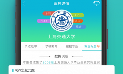 各院校历年专业录取详细数据,一键智能填报并生成志愿表,就业数据智能分析等等。